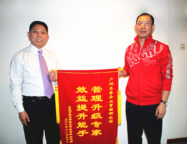 新光源董事長(zhǎng)李健宇贈(zèng)送正睿咨詢“管理升級(jí)專家,效益提升能手”錦旗